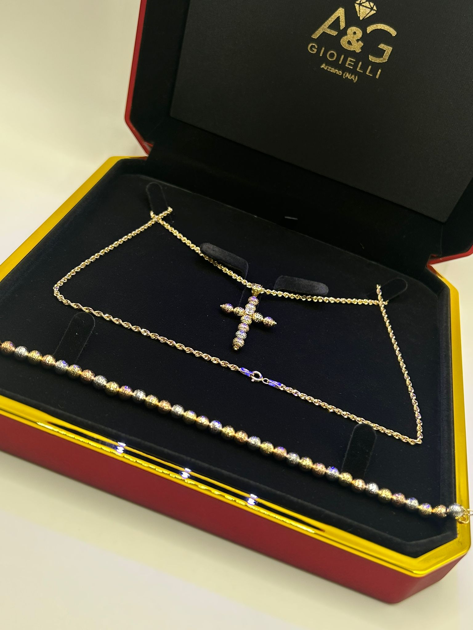 specchiatina con croce in oro18kt-2.40gr 50cm