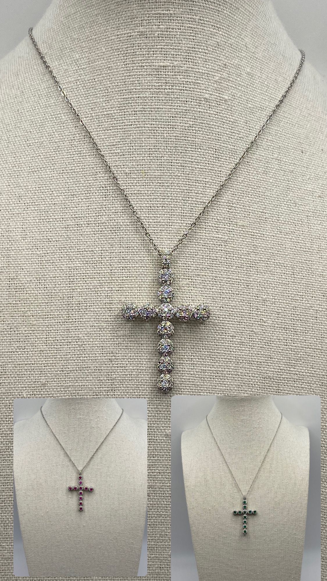 collana croce zirconata in acciaio-45cm