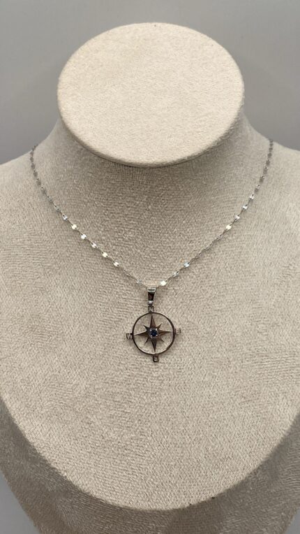 Collana specchiatina con rosa dei venti in Oro 18kt, lunghezza 50 cm, peso 2.20 gr. Un mix di brillantezza e stile raffinato.