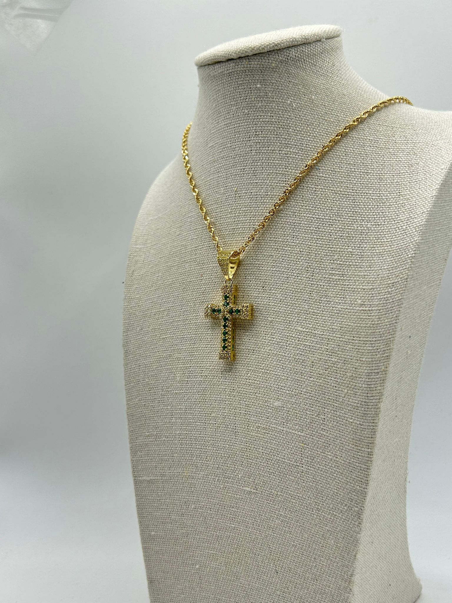 collana americana con croce zirconata in oro18kt-6.60gr 60cm