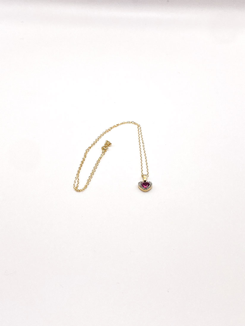 Il ciondolo a forma di cuore, impreziosito da una pietra rossa al centro e circondato da zirconi, rappresenta un simbolo di amore e forza. Il contrasto tra il rosso vivo e la brillantezza dei zirconi esalta la raffinatezza di questo gioiello, rendendolo un accessorio prezioso e sofisticato. Perfetto per chi desidera un tocco di colore e luce, questa collana è una scelta eccellente per eventi speciali o per aggiungere un pizzico di lusso alla vita quotidiana.
